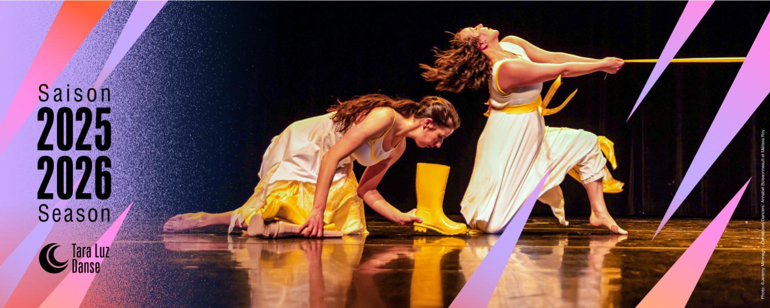 Come and discover Angélie, a playful, vibrant, sensitive and poetic character. In this whimsical dance work, Angélie surrounds herself with shoes and a collection of objects inspired by her favourite colour, yellow, which lead her into a world filled with movement and imagination. With more than one woman on stage, the audience is also invited to consider: which one is Angélie?