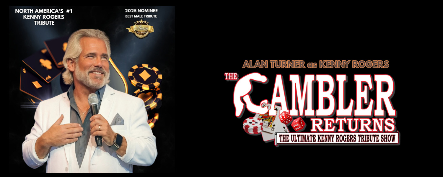 Joignez-vous à nous pour voir Alan Turner, artiste de studio country primé, recréer la magie d’une soirée avec Kenny lors du spectacle hommage à Kenny Rogers par excellence, The Gambler Returns. Ce spectacle hors pair avec un groupe complet de musiciens vous fera voyager dans la carrière musicale d’une icône et légende américaine ayant vendu plus de 120 millions d’albums partout dans le monde et cumulé quelque 24 succès numéro 1 (dont The Gambler, Lady, Islands In The Stream, Lucille, She Believes In Me et beaucoup plus). Le public en redemandera!